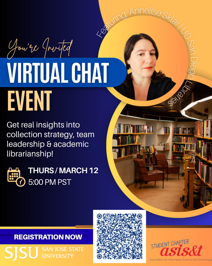 Join us for a virtual chat with Annelise Sklar, Social Sciences Collection Strategist and Assistant Director of Collection Development & Management at UC San Diego Libraries. With deep experience overseeing physical collections, leading teams, and previously directing the Scholarship Tools & Methods Program, including the Data & GIS Lab, she offers valuable insights into modern academic librarianship. If you’re interested in exploring academic librarianship or collection strategy roles, this is the event for you!