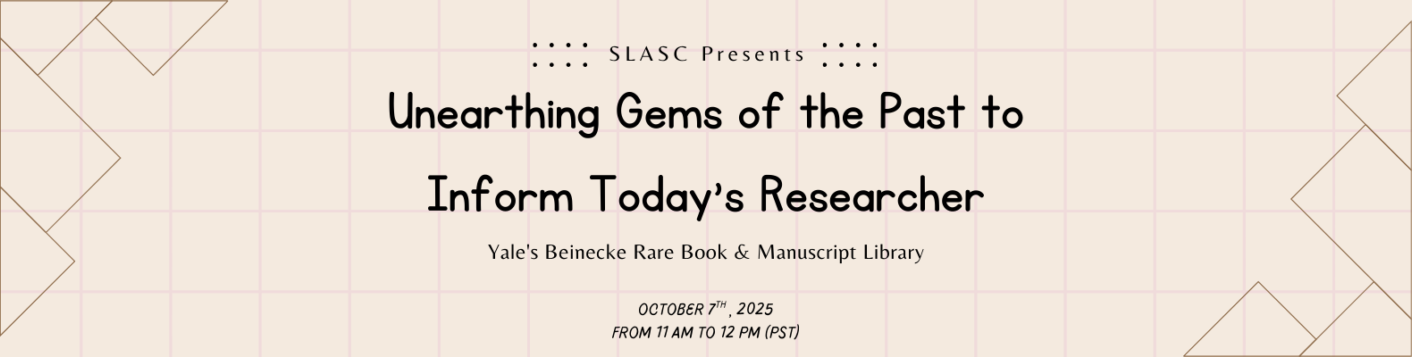 Please join the Special Libraries Association Student Chapter (SLASC) on Tuesday, October 7th, 2025 from 11:00 am to 12:00 pm (PST) for a special presentation from the Yale Beinecke Rare Book & Manuscript Library. Two archivists and a librarian at Yale’s Beinecke Rare Book & Manuscript Library meet to talk about the inner workings of their time working with one of the largest collections of rare works. Their library’s vision statement discusses engaging historic works to transform our future through new knowledge. This roundtable event allows us to peek into how collections are curated, archived, and made accessible for the scholars of today.
